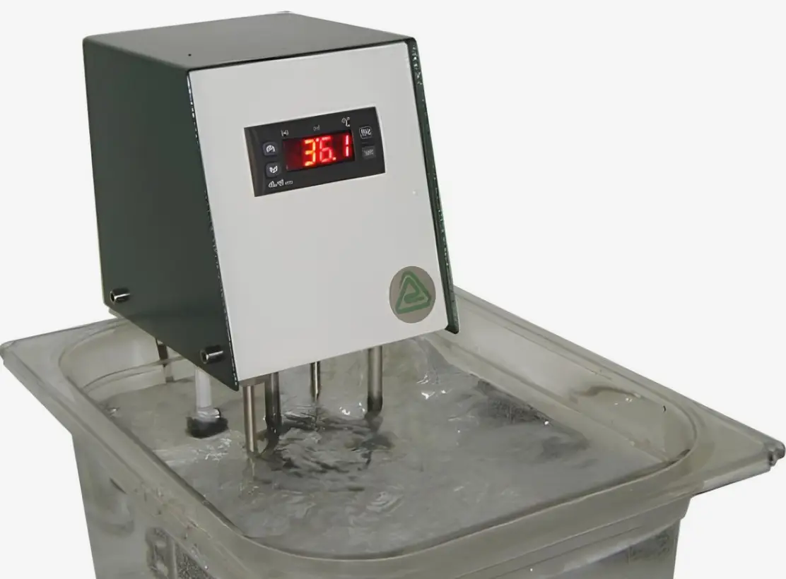 La température est régulée grâce à un régulateur thermique numérique, avec un affichage digital offrant une résolution de 0,1°C pour une lecture facile et précise. Elle intègre également un ventilateur pour l’agitation et le mélange de l’eau, assurant une distribution uniforme de la chaleur.
